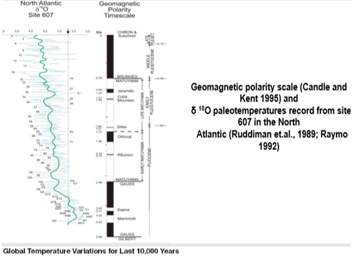 Εικόνα 6. Πάνω από 100 κλιματικές αλλαγές διαπιστώθηκαν τα τελευταία 10000 χρόνια κάνοντας χρήση της γεωμαγνητικής πολικότητας και των ισοτόπων δ 180.
