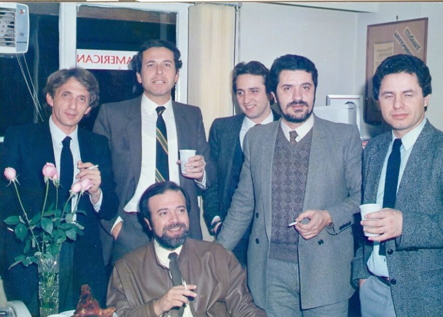 από αριστερά: Κώστας Ανδρεόπουλος, Γαβριήλ Αντωνιάδης, Τάκης Καπάνταης , Γιώργος Ψαρράς, Κώστας Μπερτσιάς, και καθιστός Κώστας Τσίρος.
