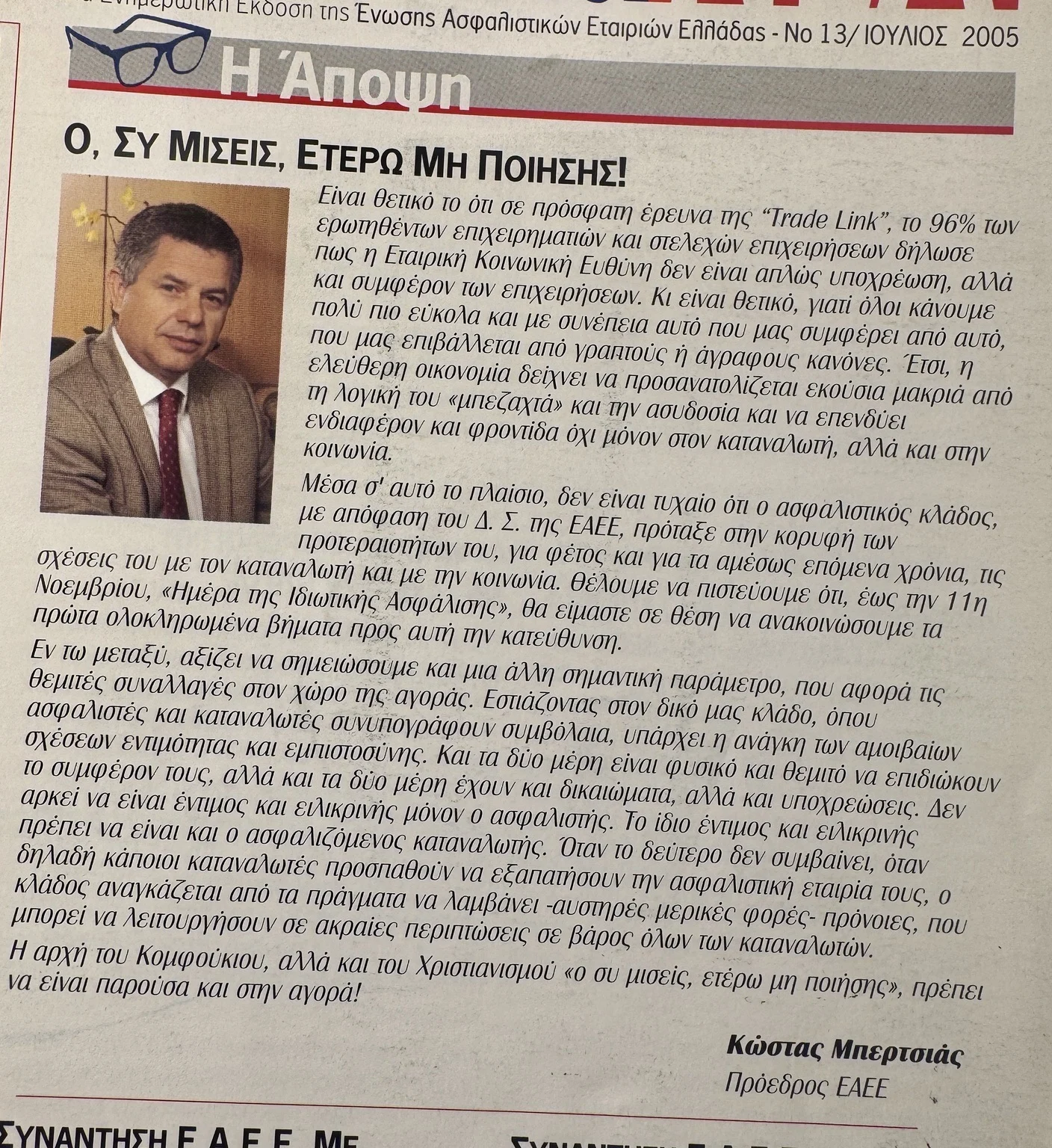 Ενημερωτική Έκδοση της Ένωσης Ασφαλιστικών Εταιριών Ελλάδας – No 13 / Ιούλιος 2005