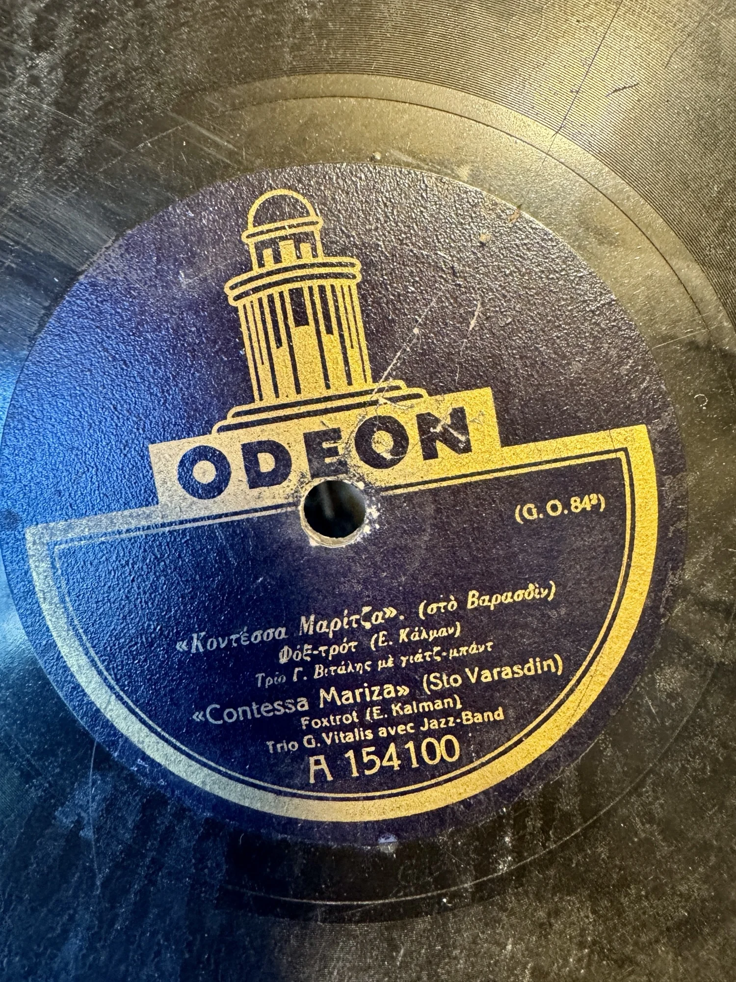 Στο κέντρο του παλιού δίσκου, κάτω από τη χρυσή καμάρα της Odeon Records, στέκει ένα όνομα που κουβαλά άλλες εποχές: «Κοντέσσα Μαρίτζα».