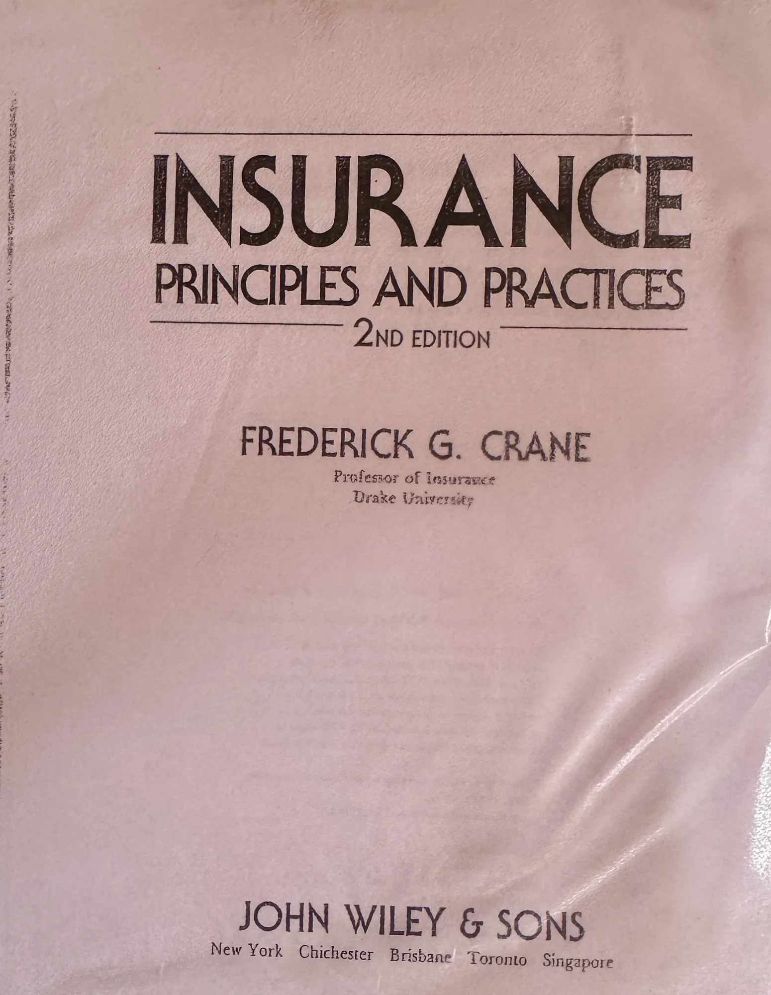 *Frederick G Crane έχει συγγράψει το κλασικό πανεπιστημιακό εγχειρίδιο ασφάλισης: insurance principles and practices, που είναι ακόμη και σήμερα το πιο επιδραστικό βιβλίο για την ασφαλιστική επιστήμη