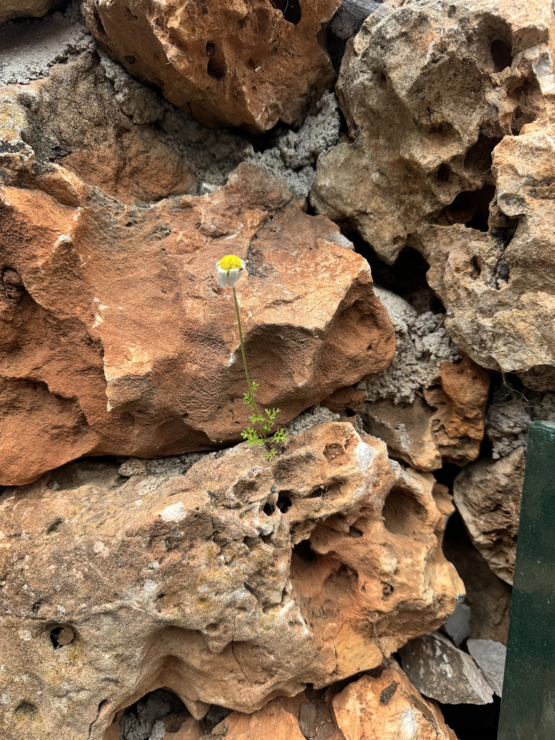 Μια μικρή μαργαρίτα ξεπροβάλλει ανάμεσα στις άγριες πέτρες τις φθαρμένες από την πολυκαιρία..