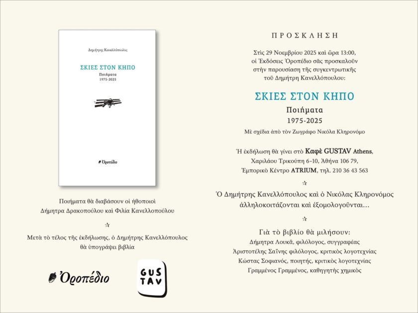 Τρία χαρακτηριστικά δείγματα της εξαίρετης ποιητικής συλλογής του Δημήτρη Κανελλόπουλου με τίτλο: Σκιές στον Κήπο: